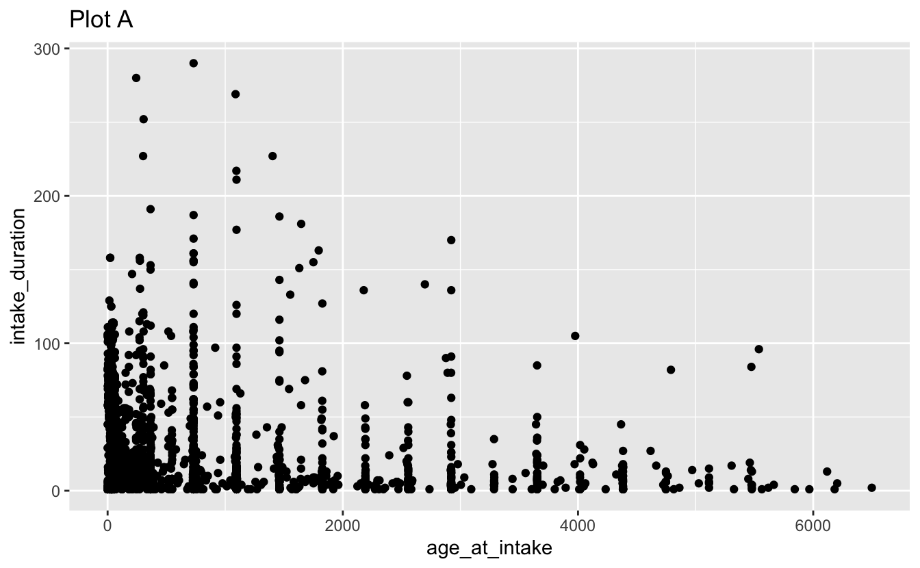 geom_point(aes(x = intake_type, y = age_at_intake)) +