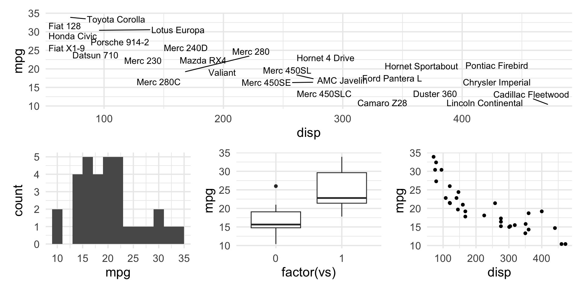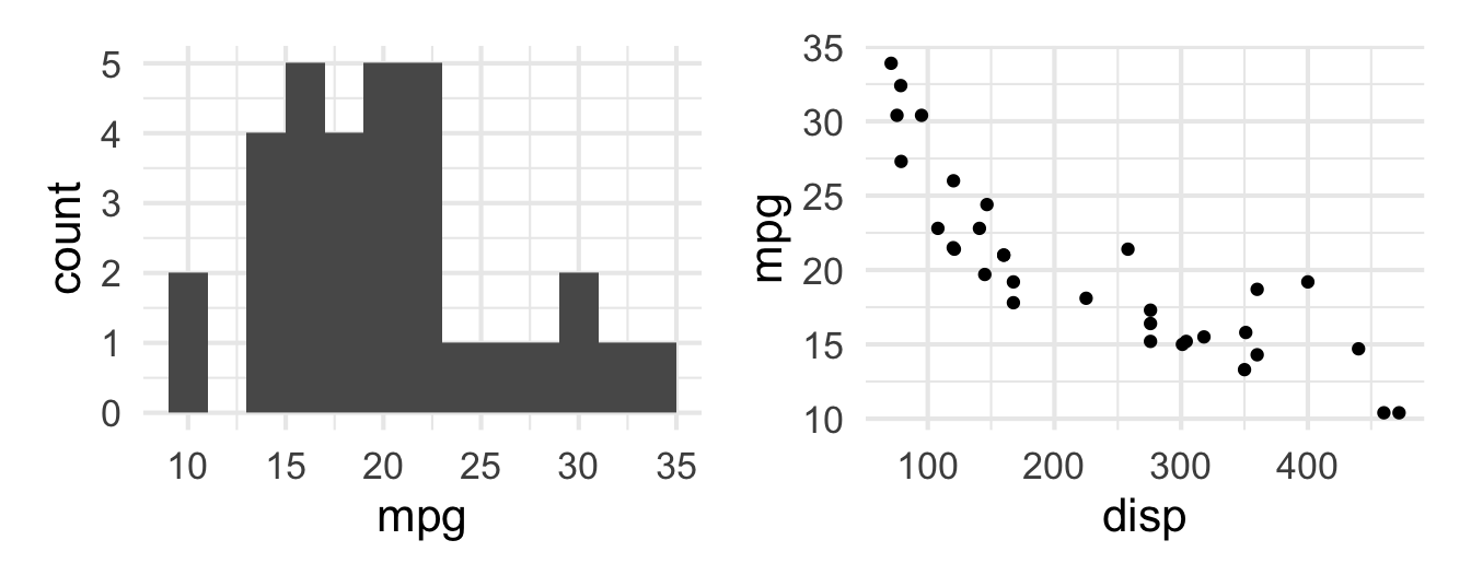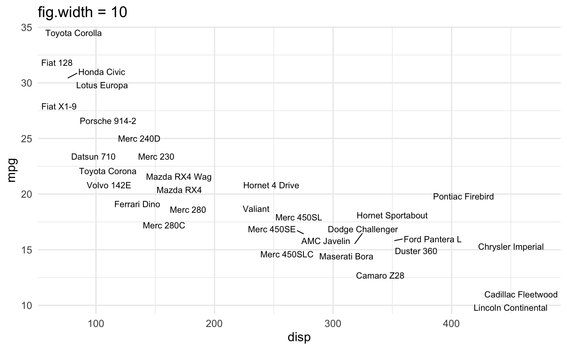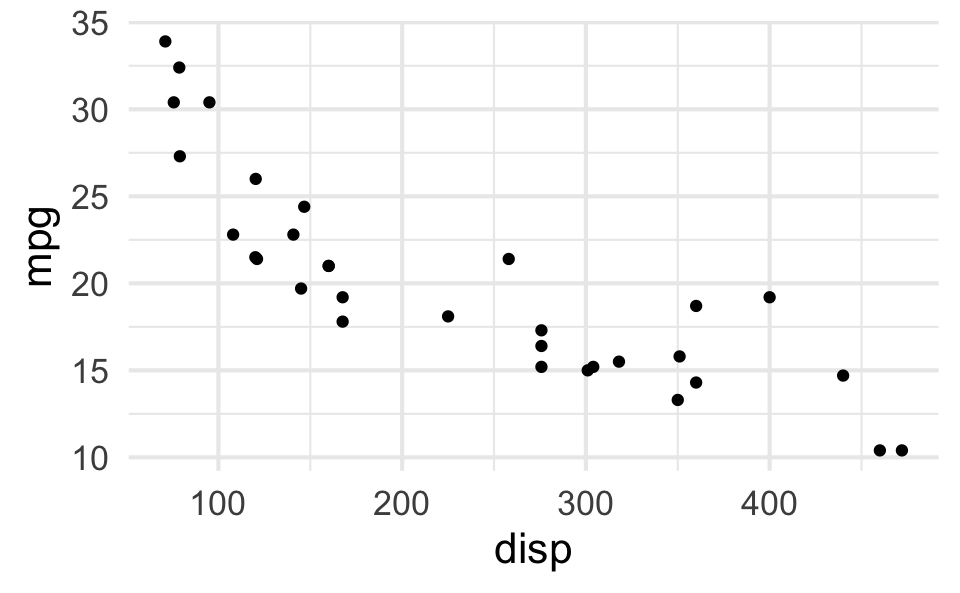 p_scatter <- ggplot(mtcars, aes(x = disp, y = mpg)) +