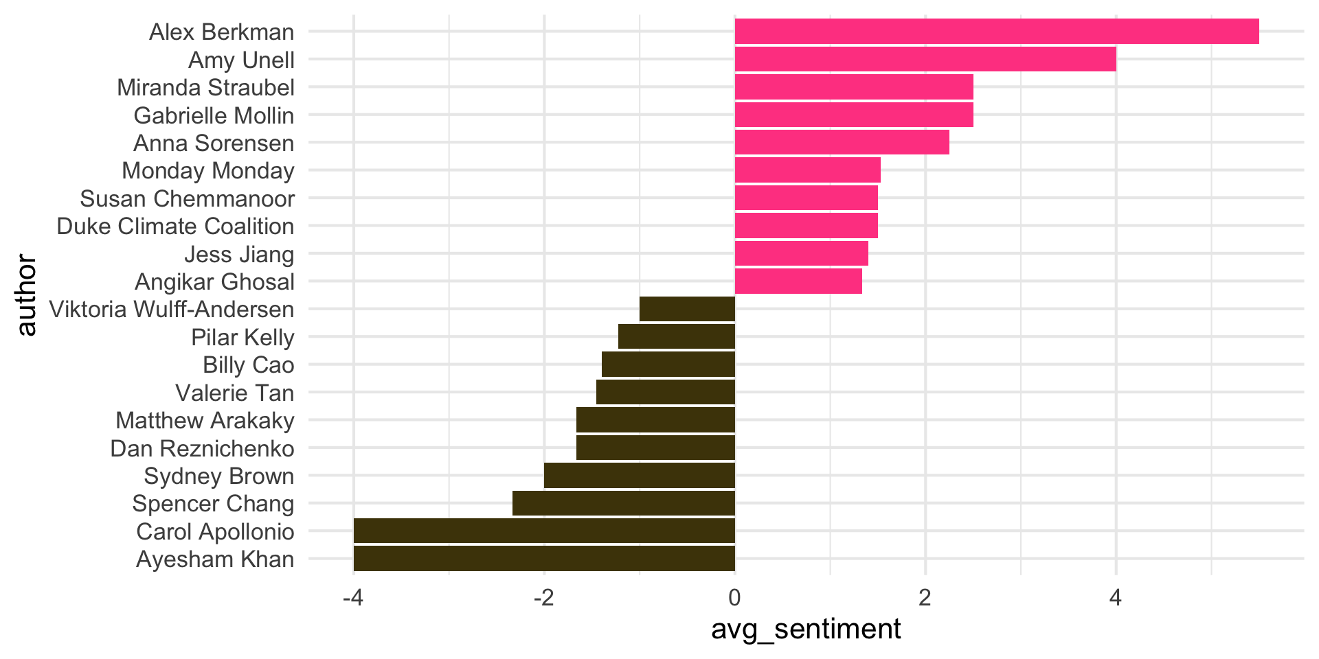 ggplot(aes(y = author, x = avg_sentiment)) +
