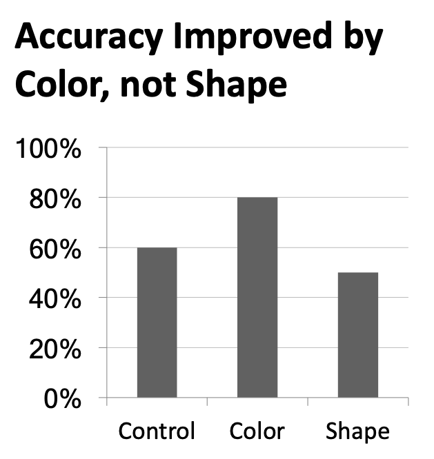 Use consistent features throughout plots (e.g., same color represents same level on all plots)