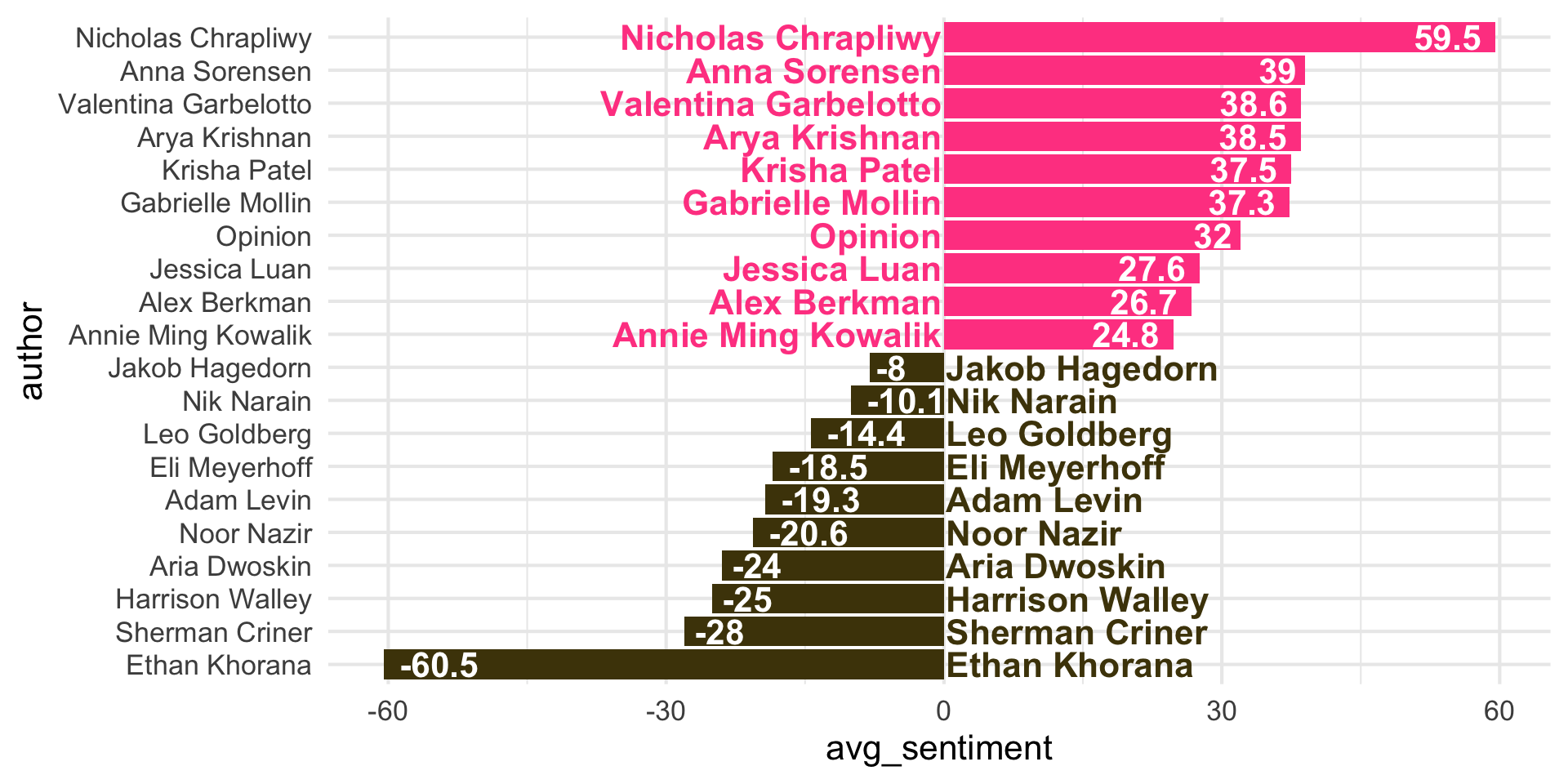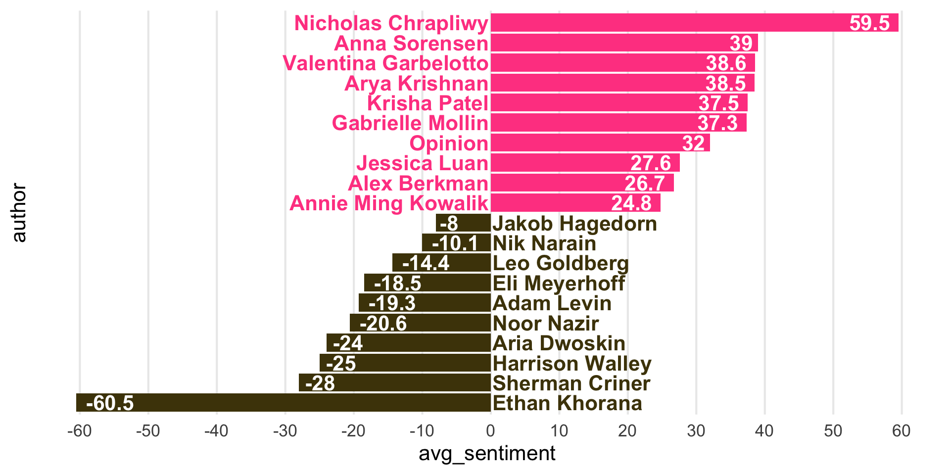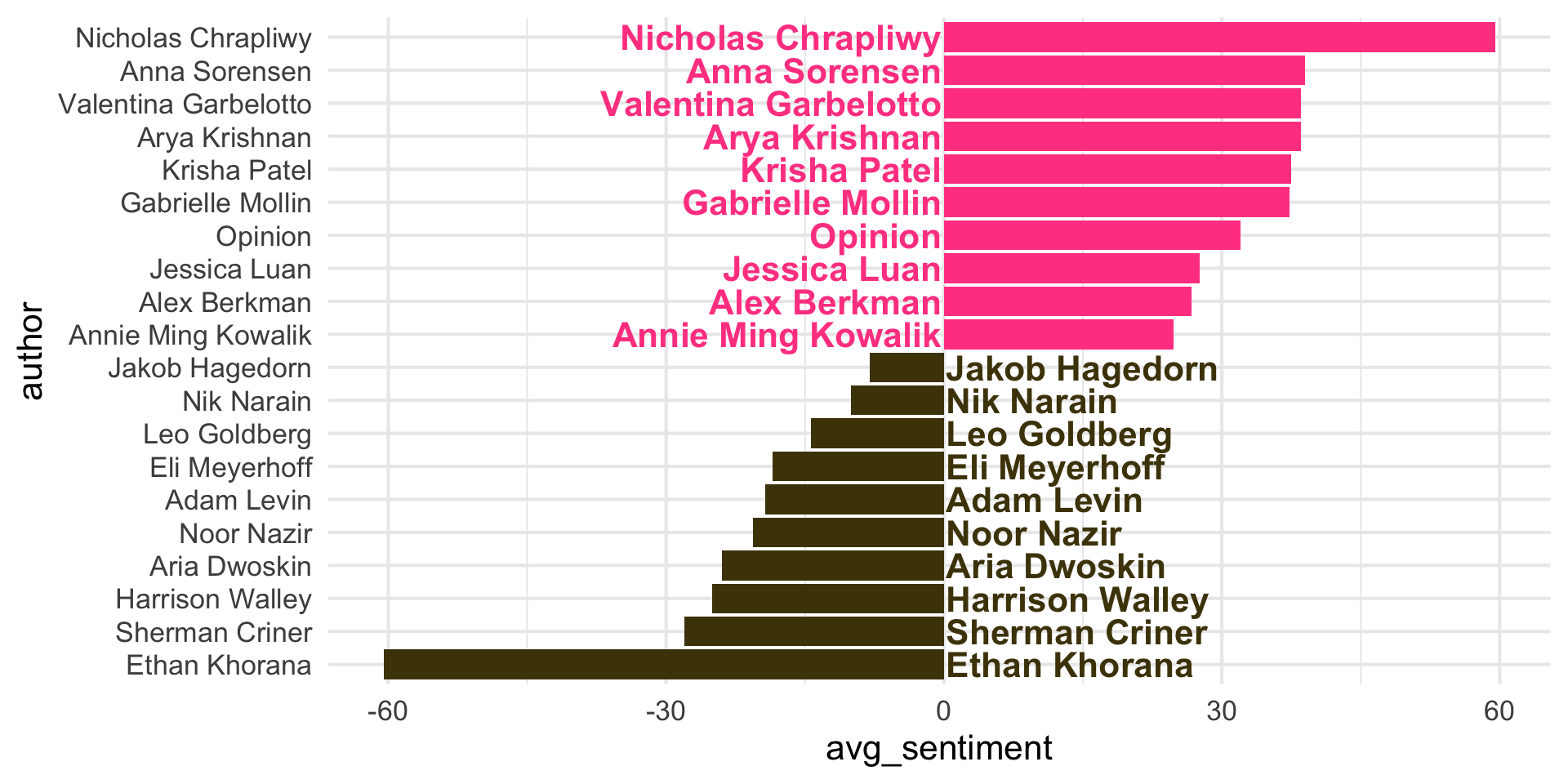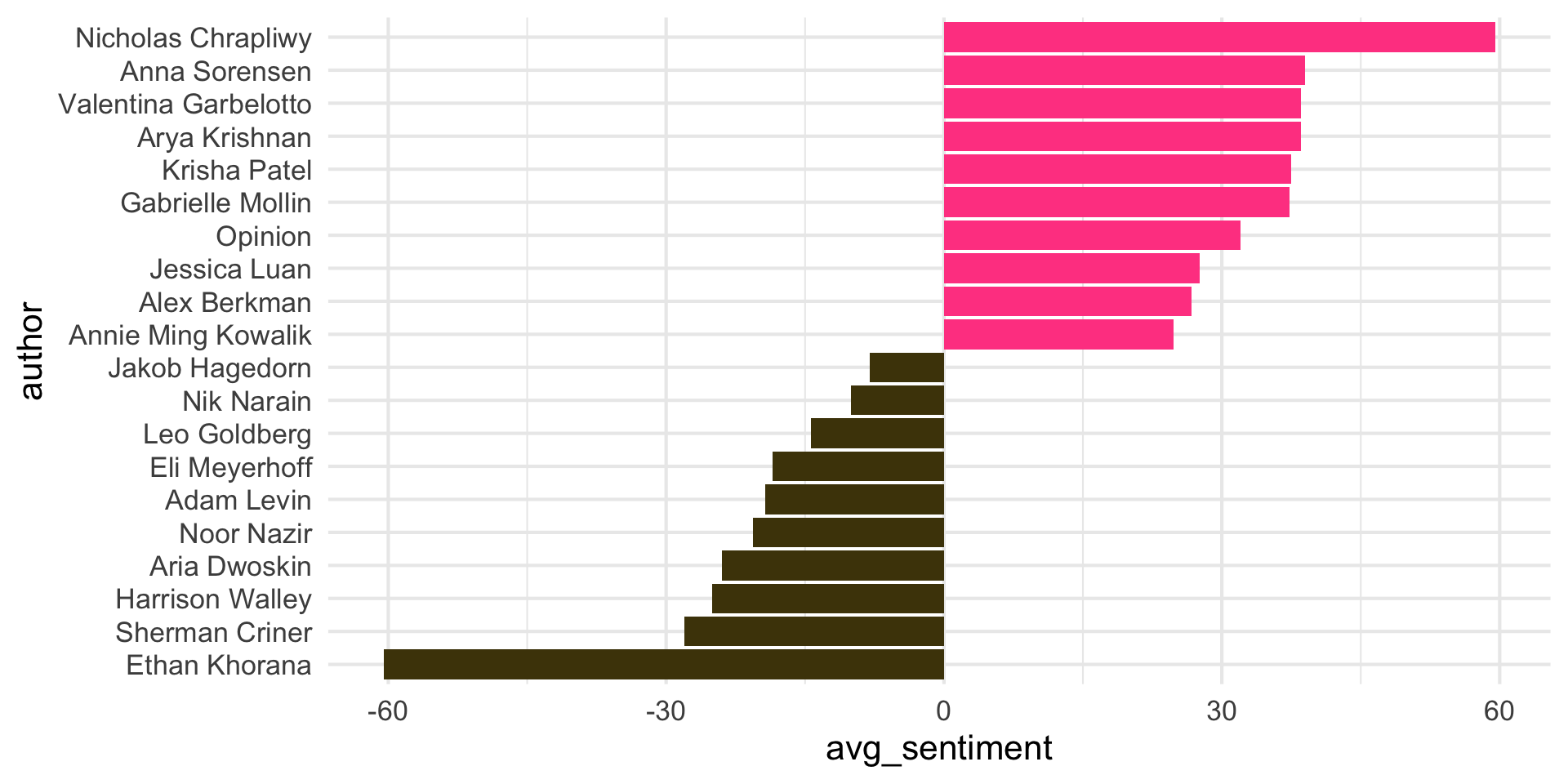 ggplot(aes(y = author, x = avg_sentiment)) +