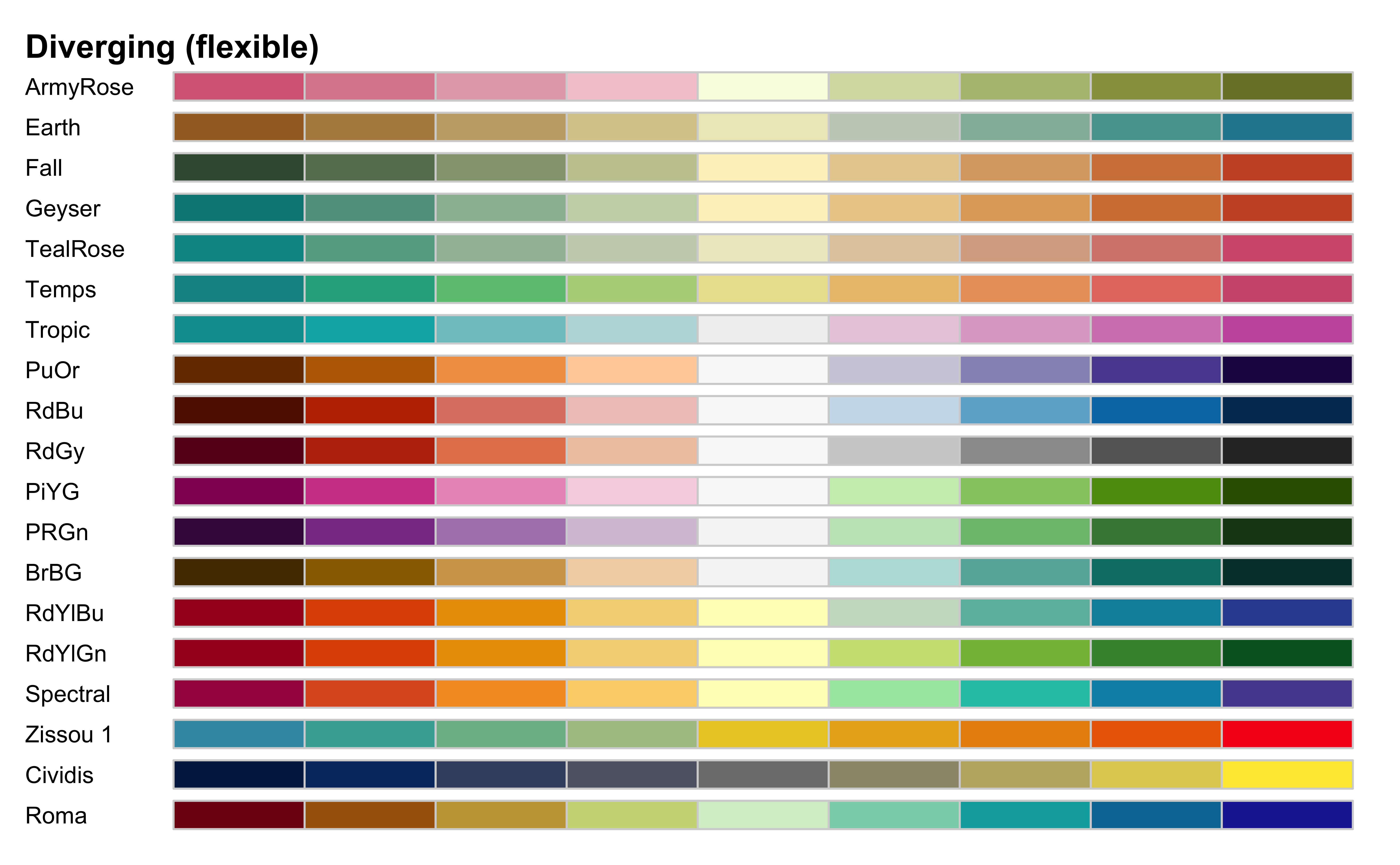 colorspace::divergingx_palettes(plot = TRUE, n = 9)