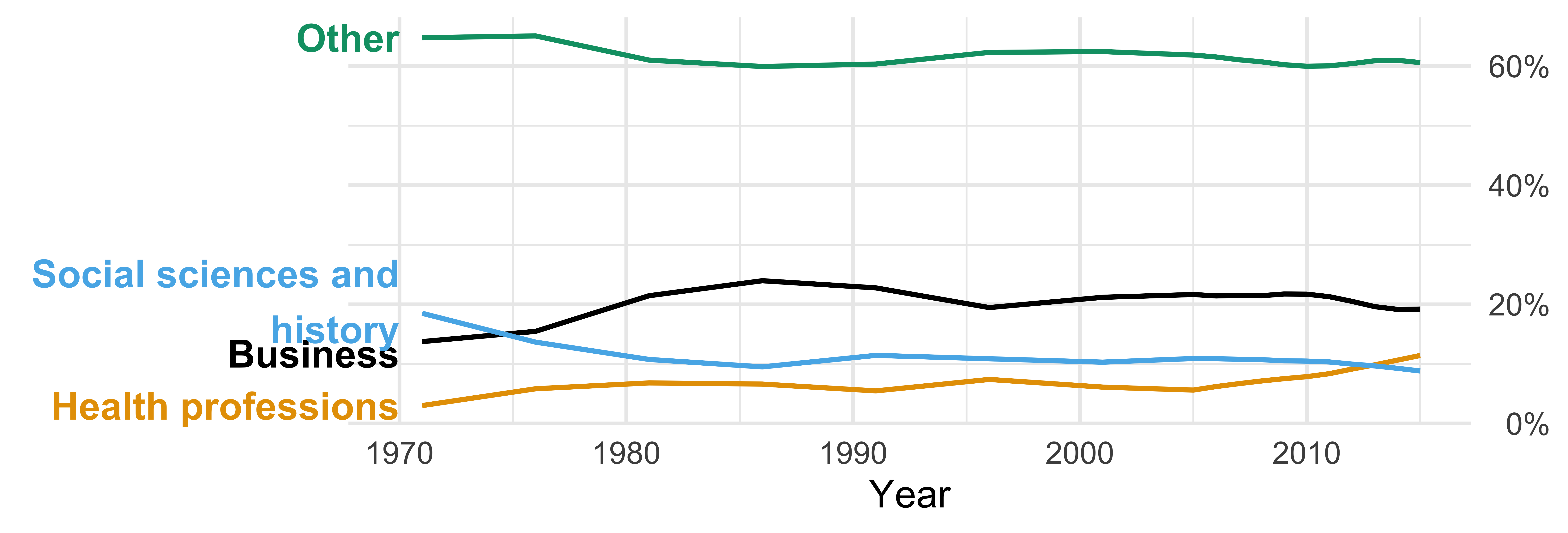 Health professions 3% 6% 7% 7% 5% 7% 6% 6% 6% 7% 7% 8% 8% 8% 9% 10% 11% 11%